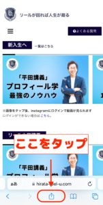 A.リール大学サイトをSafariで開き、ホーム画面に追加をタップしてください。(下画像を参考)